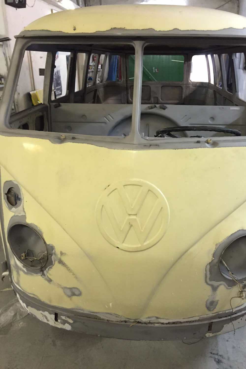 Unser 15-Fenster-Bus ist unsere vorletzte Errungenschaft. Er wurde 2015 komplett zerlegt und bekam eine ausgiebige Dusche beim Sandstrahler. Danach gab der Lackier- und Sattlermeister sein Bestes und der Bulli bekam eine neue rot-weiße Lackierung. Dann wurde er wieder zusammen gebaut und ihm wurde mit liebevollen Details und Accessoires zum letzten Schliff verholfen.